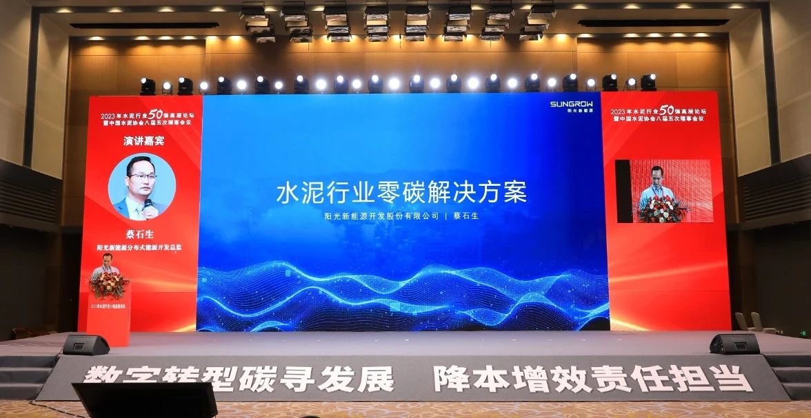 8月23日,中国水泥协会理事会暨2023年水泥行业50强高层论坛在重庆召开。阳光工商业光伏携水泥行业零碳解决方案亮相论坛,通过不同场景下的工商业光伏产品及解决方案,为行业提供匹配度高、友好性强的零碳解决方案。