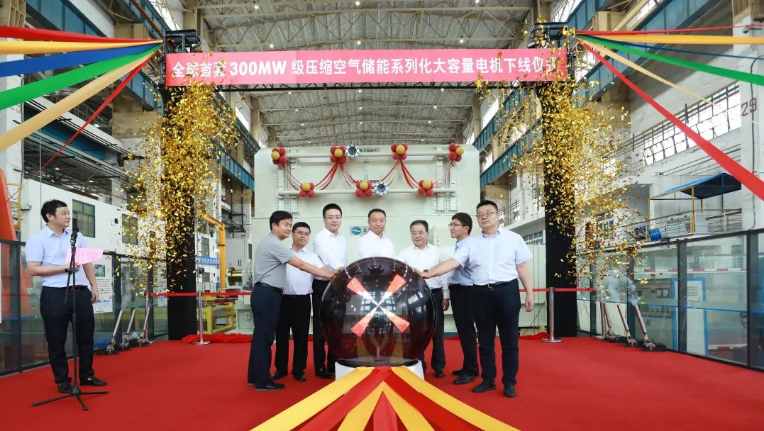 8月23日,由上海电气集团上海电机厂有限公司(以下简称“上海电机厂”)自主研制的全球首套300MW级压缩空气储能系列化大容量电机举行下线仪式。产品主要技术指标达到同类产品国际先进水平,对推动国家压缩空气储能行业进展具有重大意义。