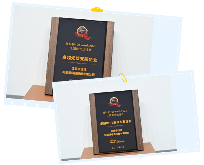 创新是企业发展的核心驱动,是行业进步的永恒主题。凭借持续的创新和卓越的品牌影响力,在日前举办的OFweek 2023(第十四届)太阳能光伏产业大会上,中信博荣获“维科杯·OFweek 2023太阳能光伏行业卓越光伏支架企业”、“维科杯·OFweek 2023太阳能光伏行业卓越BIPV解决方案企业”两项大奖。