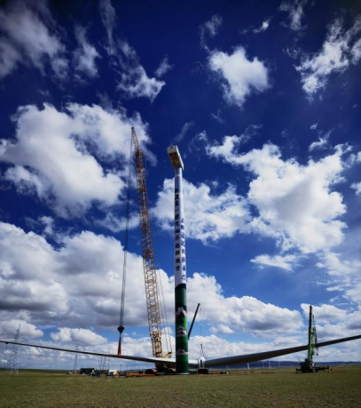 三一重能参建的阿勒泰20万千瓦/80万千瓦时储能配套吉木乃风电项目,安装了32台三一重能6.25MW风电机组,是典型的大型机组应用案例,按以往经验来看,吊装一台大兆瓦机组需2天左右,而该项目仅用44天完成吊装,单台最快吊装用时21小时,已于近日成功并网。