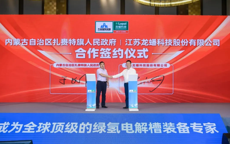 基于龙蟠科技在氢能领域的技术经验和管理优势,在龙蟠科技“天蓝1号”下线仪式活动现场,龙蟠科技与内蒙兴安盟扎赉特旗政府正式签订合作协议。根据协议,龙蟠科技将借助内蒙古兴安盟地区的区域优势,设立绿色甲醇、绿氨出口贸易企业、电解槽销售公司以及电解槽测试基地等。等待各方面条件成熟后,龙蟠科技还计划在兴安盟筹备建立电解槽装备生产基地。