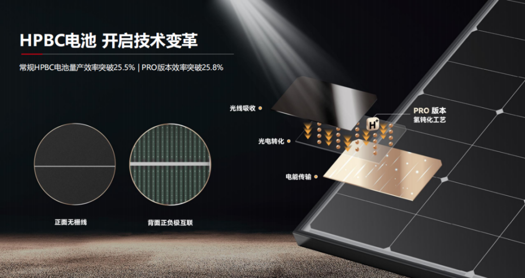 Hi-MO X6防积灰高效光伏组件,采用了隆基自研的HPBC技术,具有美观、发电效率高、安全可靠、防积灰等四大特点。