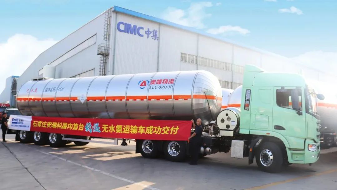 近日,中集安瑞科旗下石家庄安瑞科气体机械有限公司研发及生产的国内首台低温无水氨运输车成功下线并实现批量交付。