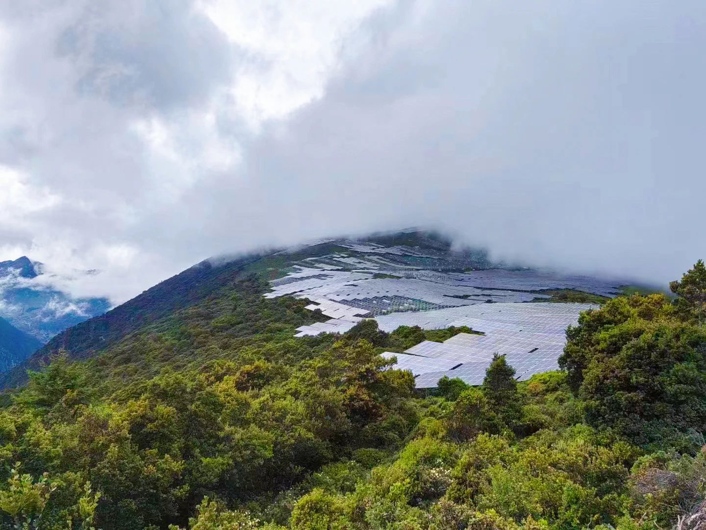 群山荟萃中,位于四川省甘孜藏族自治州九龙县境内的“水光牧互补”光伏电站项目正在火热建设中。已安装好的组件整齐排列,如一条闪着波光的蓝色绸带,为山林增色。项目装机总容量为463.18MW,全部采用天合光能2382mm中版型210R至尊580W系列组件。一期项目装机容量为390MW,投产后平均年发电量可达约6.6亿千瓦时,同时每年将减少使用19.97万吨标准煤,减少54.94万吨二氧化碳排放。