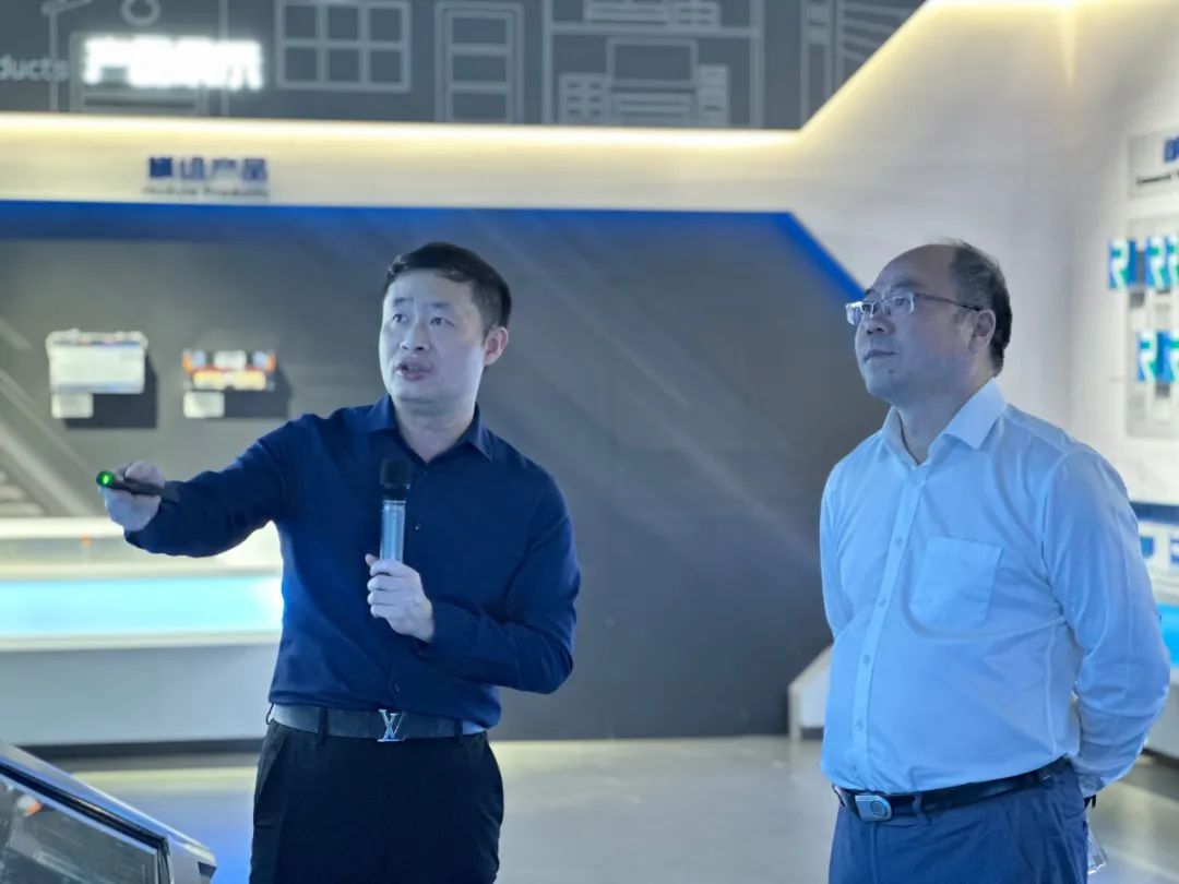 在瑞浦兰钧数字化展厅中,张志明总监向王忠民书记介绍了公司发展概况、产品应用模式、企业布局规划等方面内容。瑞浦兰钧为避免“卡脖子”问题,依托于青山实业丰富的矿产资源以及原材料-正极材料-锂电池的全产业链发展,持续创新核心技术,不断增强综合竞争力,为打造高质量、高一致性产品奠定重要基础。目前,瑞浦兰钧自主研发的问顶电池采用一体化焊接技术,在相同体积的前提下,进一步提升电池容量,将电芯体积能量密度比做到行业顶尖。