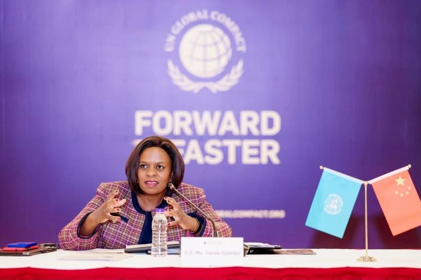 会上,联合国助理秘书长、联合国全球契约组织总干事桑达·奥佳博(Sanda Ojiambo)女士致欢迎辞,并与“加速前进”倡议中国企业深入交流各家可持续发展实践。