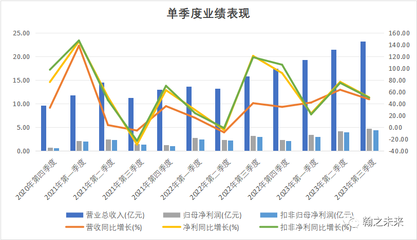 1、三季度业绩继续维持高速增长:第三季度营收23.22亿元,同比增长47.23%,归母净利润4.71亿元,同比增长50.51%,扣非归母净利润4.42亿元,同比增长49.88%;前三季度公司营收64.05亿元,同比增长50.48%,归母净利润12.23亿元,同比增长48.96%,扣非归母净利润11.30亿元,同比增长48.16%。