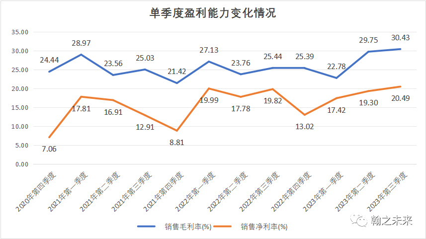 2、盈利能力不断提升:前三季度公司毛利率为27.89%,净利率为19.16%。其中第三季度毛利率30.43%,同比增加了4.99个pct,环比也增加了0.68个pct;净利率20.49%,同比增长了0.67个pct,环比也增长了1.19个pct。