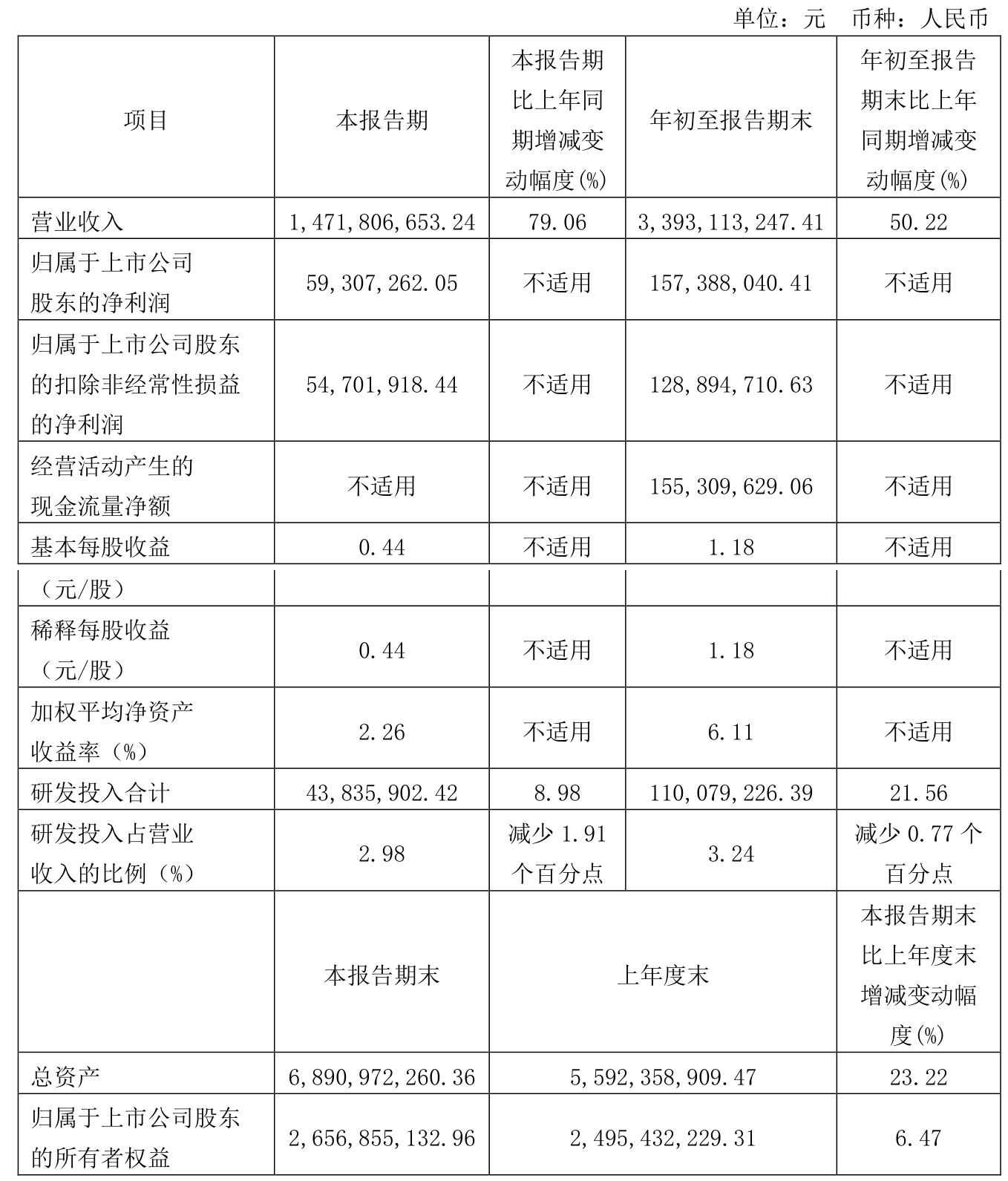 根据三季报,公司第三季度实现营业总收入14.72亿元,同比增长79.06%,环比增长33.10%;归母净利润5930.73万元,同比增长622.08%,环比持平;扣非净利润5470.19万元,同比增长479.07%,环比下降8.32%。