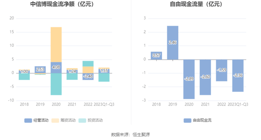 进一步统计发现,2023年前三季度公司自由现金流为-2.36亿元,上年同期为-4.78亿元。