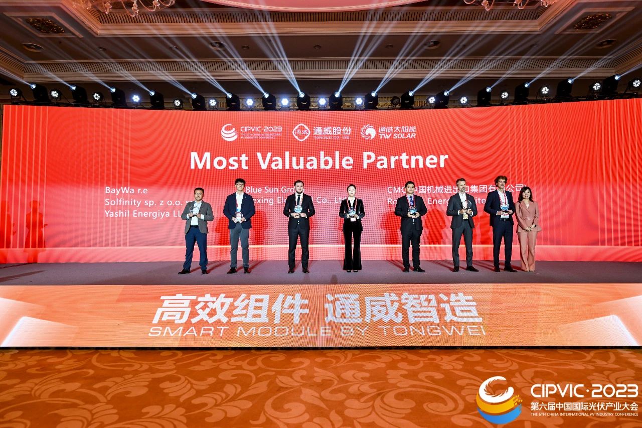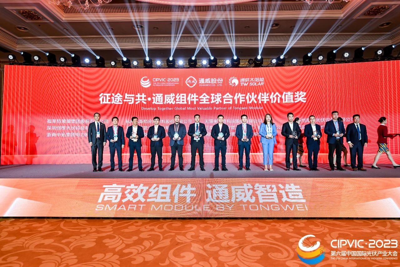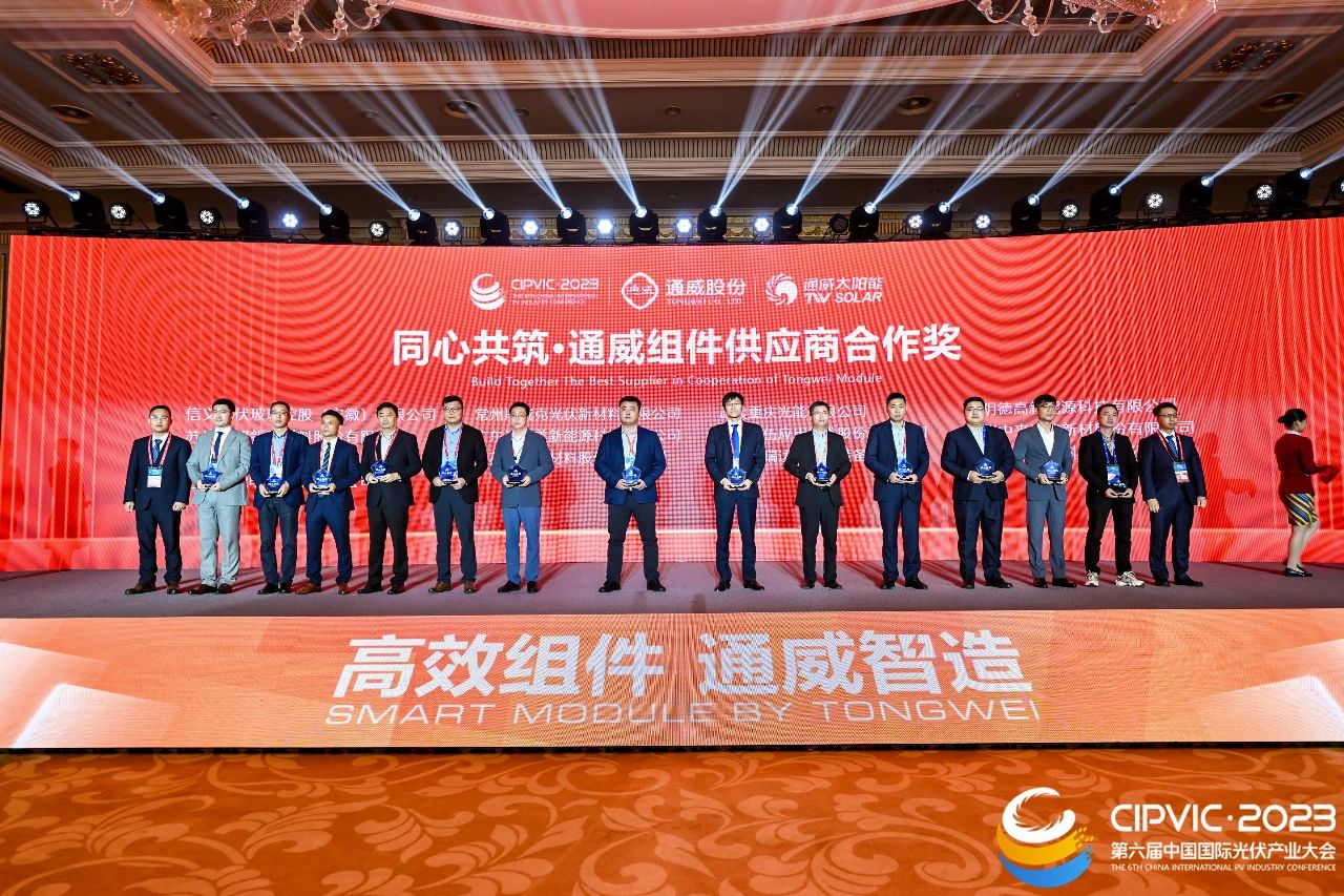 大会为长期以来支持、助力通威组件发展的合作伙伴颁奖,42家客户分别获得“同心共筑——通威组件供应商合作奖”“和衷共济——通威组件合作伙伴价值奖”“通力合作——通威组件供应商品质奖”“征途与共——通威组件全球合作伙伴价值奖”殊荣。