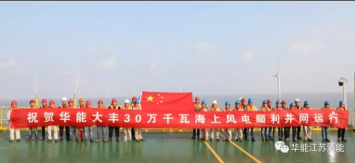 2019年9月29日18时08分,国内离岸最远的海上风电场-华能大丰一期300MW海上风电场正式并网运行。