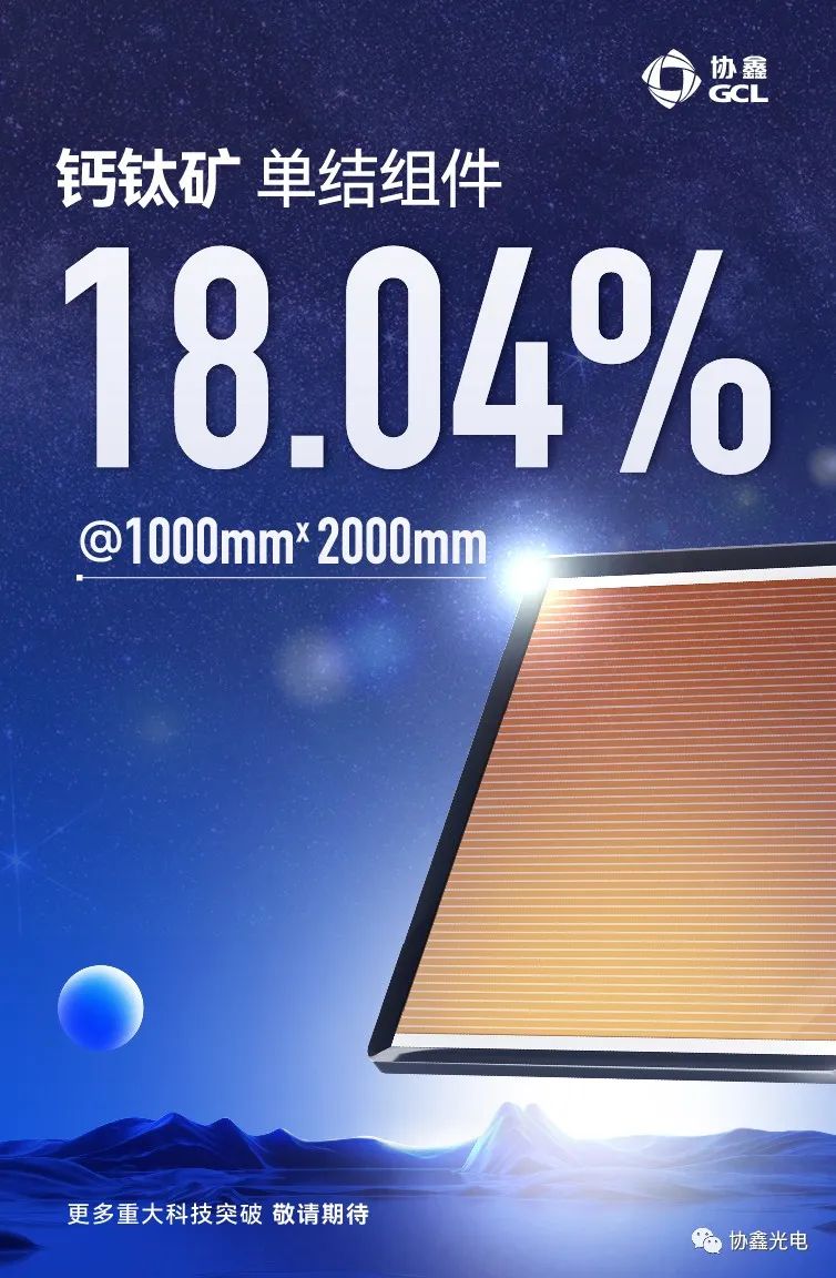 18.04%!协鑫光电1米X2米钙钛矿单结组件效率再次突破