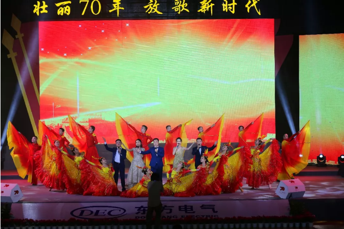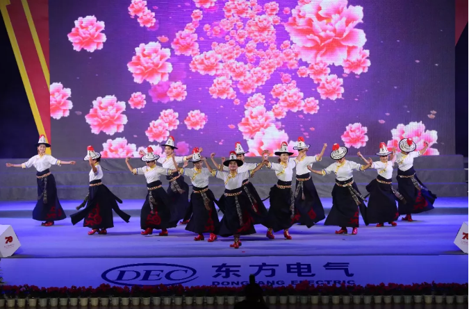 由东方电机的歌舞表演《我与祖国共成长》,东方自控的歌舞表演《龙的传人》,昭觉人民带来了热情的歌舞《新情深意长》,东方汽轮机的歌舞《天下乡亲》,壤塘县的舞蹈《则曲博姆(壤塘美 东方情)》等节目演绎了东方电气礼赞新中国,伴随祖国共同迈入改革开放富起来、民族复兴强起来的伟大历史进程。同时,由昭觉县和壤塘县同胞带来的精彩歌舞既呈现了民族服饰的华美,也展现了东方电气积极响应习近平总书记和党中央坚决打赢脱贫攻坚战的伟大决定,与定点帮扶地区人民结下的深厚情谊,鱼水深情引起现场观众的强烈共鸣,奏响了展演的金色乐章。