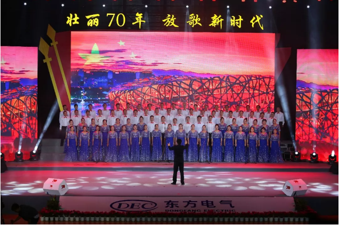 9月27日晚,东方电气集团“壮丽70年,放歌新时代”职工歌咏展演活动在德阳市体育馆隆重举行。演出现场华丽的舞台、飘扬的五星红旗、精美展板和横幅,营造出一片红色海洋。通过现场观看和手机直播,海内外东方电气人欢聚一堂,气氛热烈,深情回望初心,礼赞新中国,放歌新时代,向中华人民共和国成立70周年献礼。