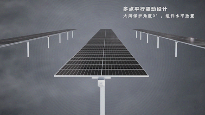 中信博目前拥有天智Ⅱ、天际Ⅱ、天双等天字系列旗舰产品,均采用行业内首创的多点平行驱动技术,以更高临界风速、最优停靠角度等优势增强对大风天气的抵御能力。
