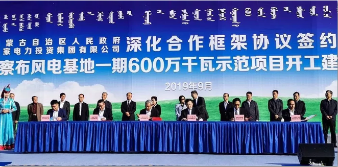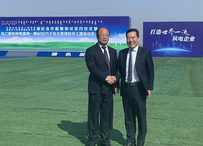 9月26日,全球最大单一陆上风电场——乌兰察布风电基地一期600万千瓦示范项目正式开工建设,明阳智慧能源集团董事长张传卫应邀出席项目开工建设动员大会。会上,明阳智能与国电投内蒙古察哈尔新能源公司签订了乌兰察布风电基地一期600万千瓦示范项目第四标段主机供货合同,携手开启中国陆上风电大型化平价新时代。