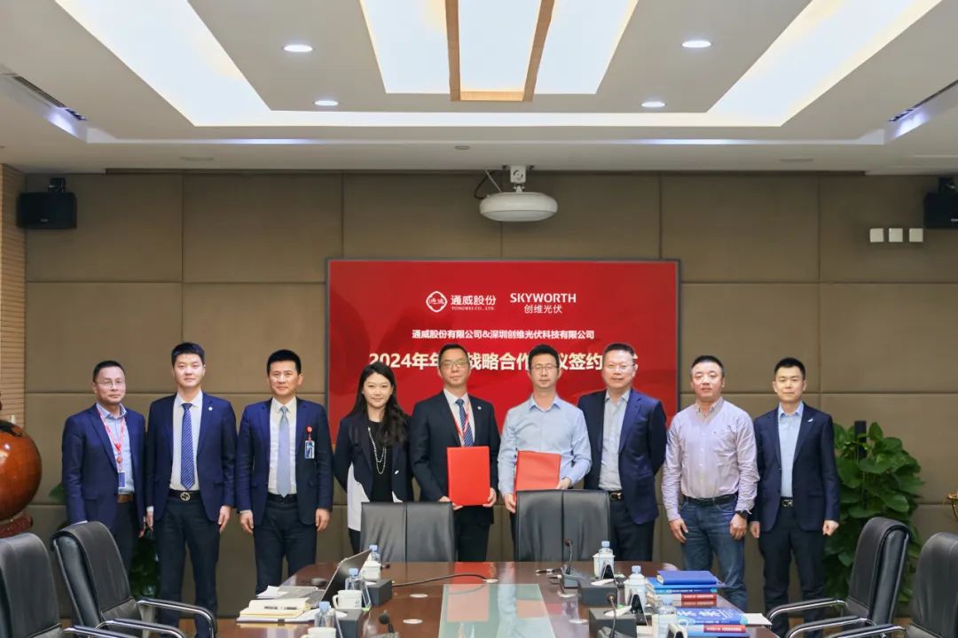 12月20日,创维光伏与通威股份签署2024年战略合作协议。根据协议,2024年双方将在分布式户用、工商业以及海外市场光伏组件领域展开超3GW的合作,助力双方企业实现高质量发展,为用户带来更多价值。