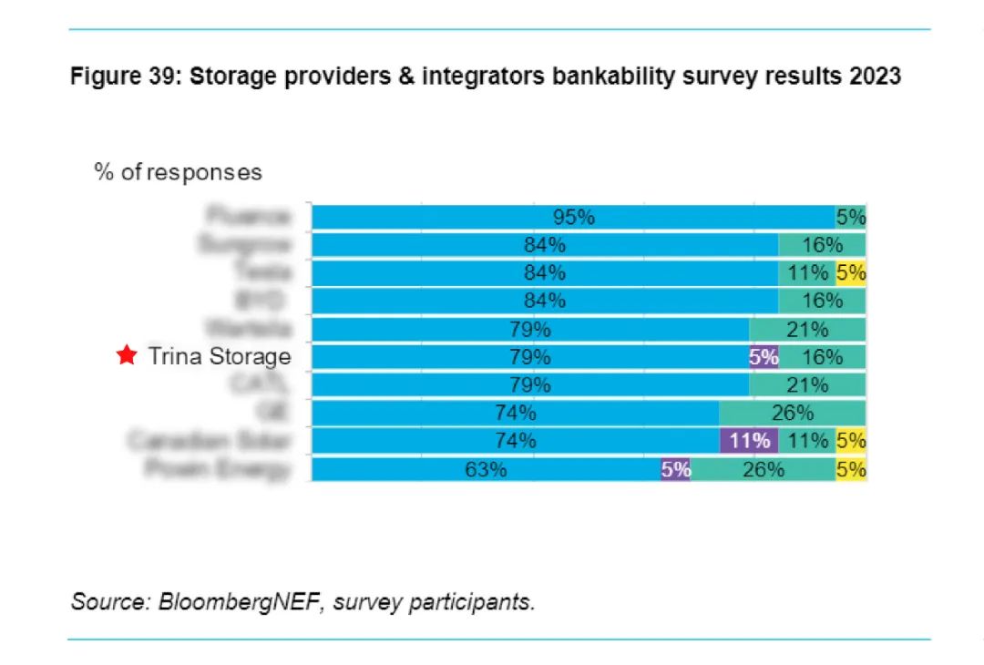 ▲ BNEF 2023年全球储能产品及系统集成商可融资性评级