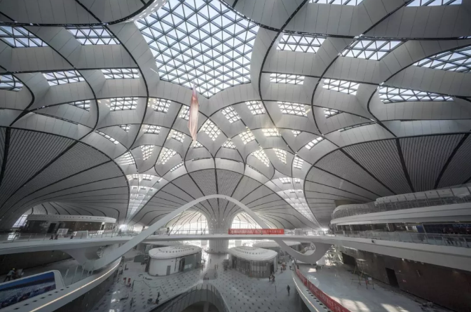 北京大兴国际机场,宛如一只展翅欲飞的“金凤凰”。