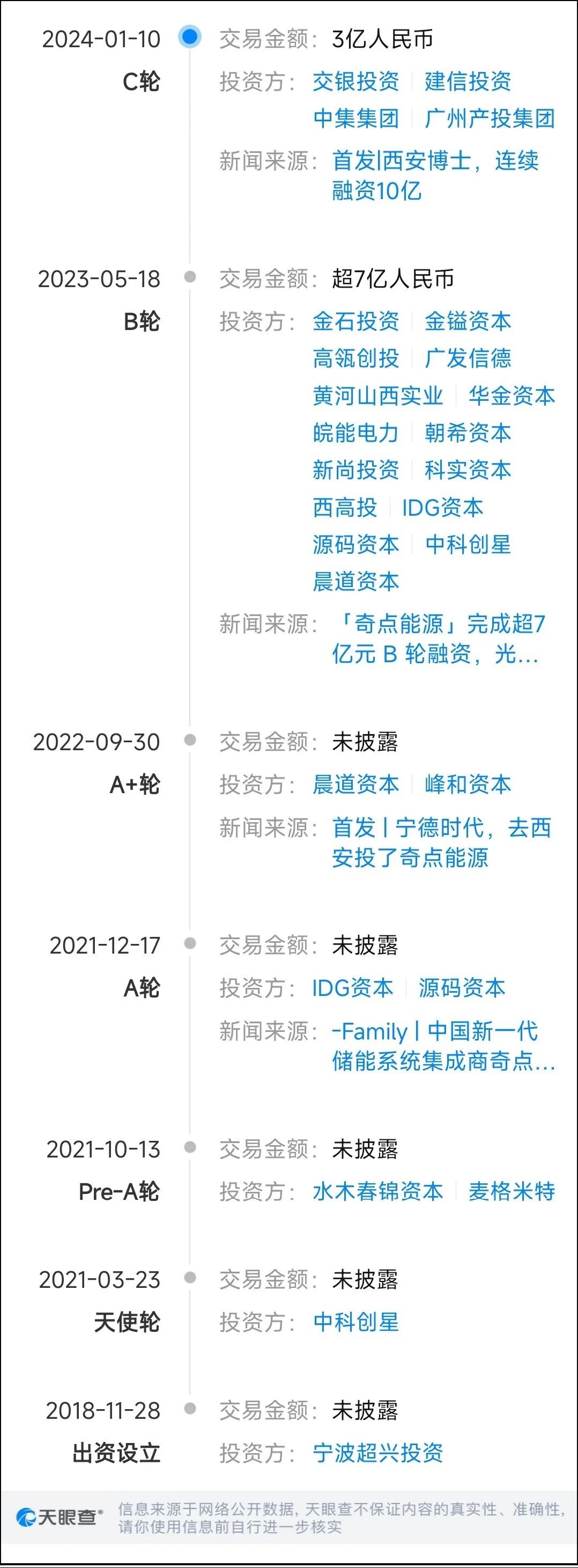 天眼查App数据显示,自2021年起至今,奇点能源已对外公布六轮融资。