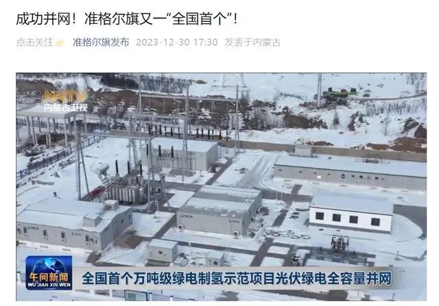 全国首个万吨级!内蒙古准格尔旗纳日松光伏制氢产业示范项目全容量并网发电