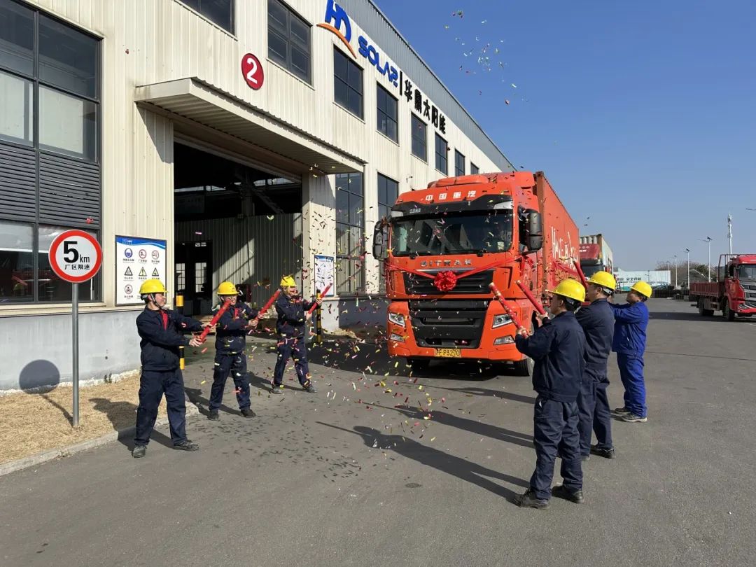 “保时、保质、保量、保进度”是华鼎新能源对客户的“四保”承诺。自项目立项以来,公司各部门紧密配合、高效运转,克服项目订单多、产线忙等困难,提前制定生产预案,并就安全生产、技术要点、质量控制、原料供应等开展紧锣密鼓的安排,仅用时12天,比项目时间节点要求提前5天就完成产品的首批发运,为后续供货交付和项目按期并网打下坚实基础。
