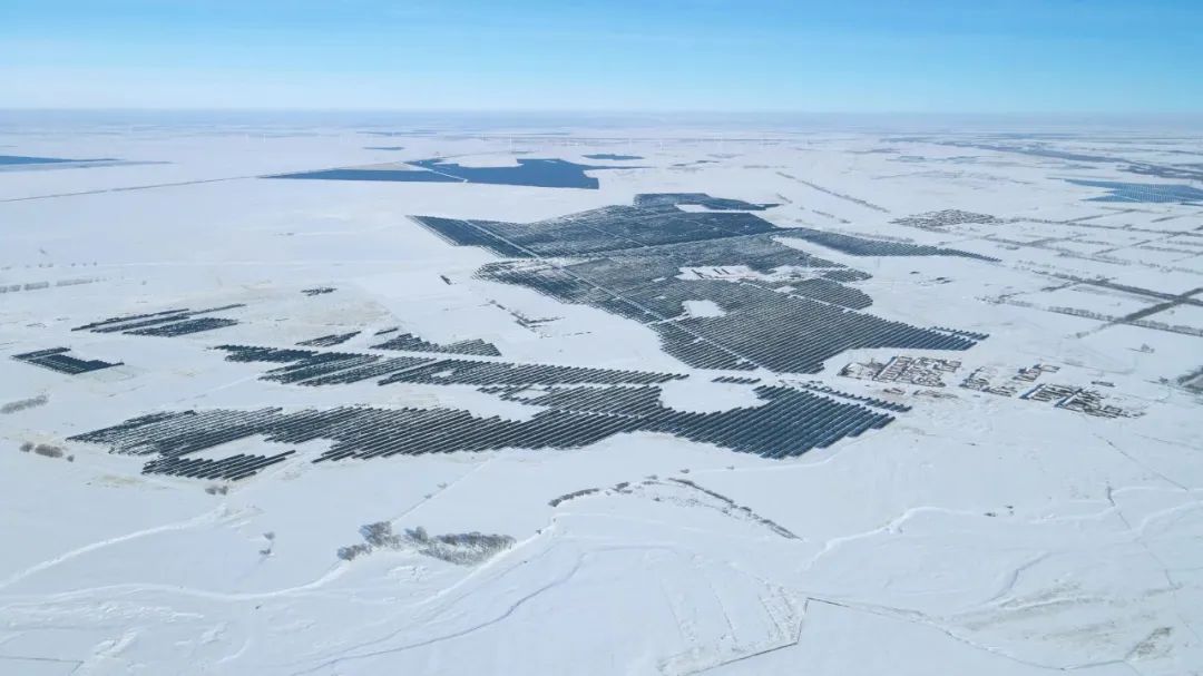 一月的河北张家口还覆盖于皑皑白雪之下,站在高处远眺张北县海流图乡,一整片黑亮的光伏组件在苍茫大地上展开巨大的双翼,将光能转换为电能,源源不断的输入河北及周边城市,为这个寒冷的冬天增添一份温暖。
