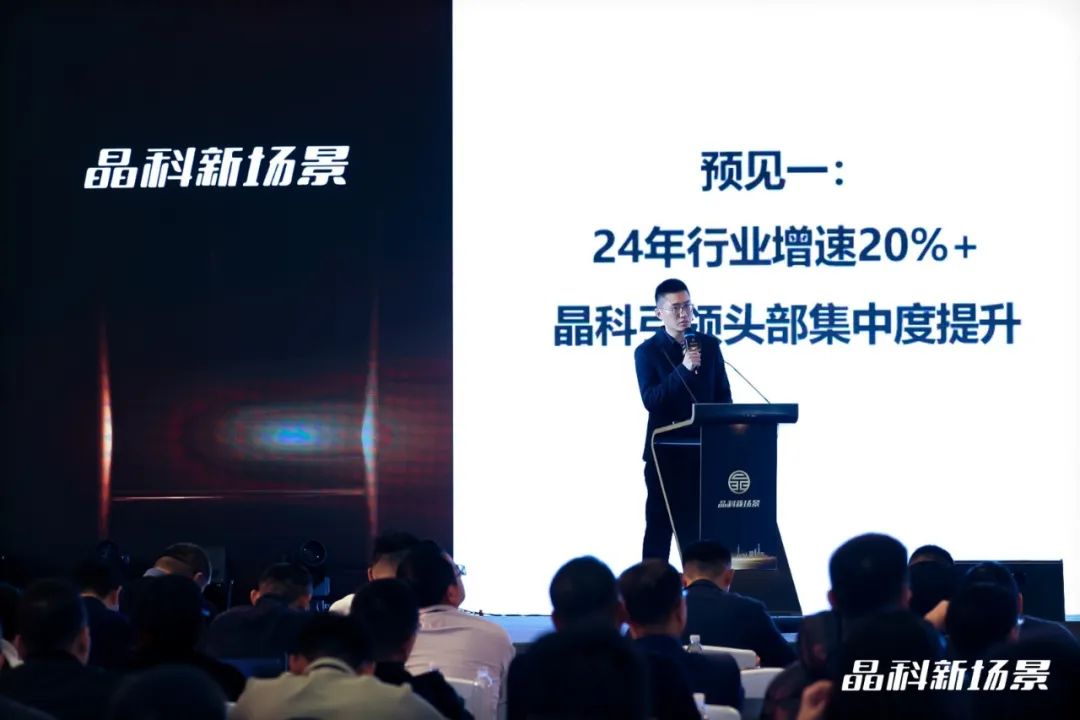 整场活动共设置了新岁、驱动、新程、焕新、共创、赋能及晶彩对话等小主题环节。晶科能源与嘉宾们结合小主题,串联剖析了分布式光伏市场的未来机会;晶科能源2024年聚焦该市场的全新布局;以及产业全环节企业如何更好协同,挖掘更大市场,实现共赢,推升产业高阶发展。