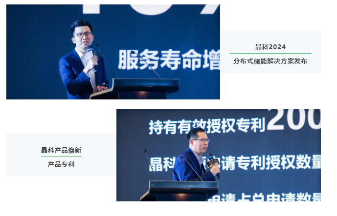 良好的形势预判下,晶科能源加速开启了自我发展新征程,且已做好万全准备。在接下来的新程、焕新主题环节。晶科新场景事业部总经理江波、晶科能源产品管理部高级经理菲尔代维斯、晶科能源储能产品高级工程师施哲骋、晶科知识产权管理部高级总监蓝绍发,分别发表了《晶科新场景2024年新的企划》、《晶科能源2024分布式组件产品发布》以及《晶科能源2024分布式储能解决方案发布》、《晶科新场景产品焕新、产品专利》主题报告。系统阐述了晶科在技术、产品、市场布局等多个方面所做的全新筹备。