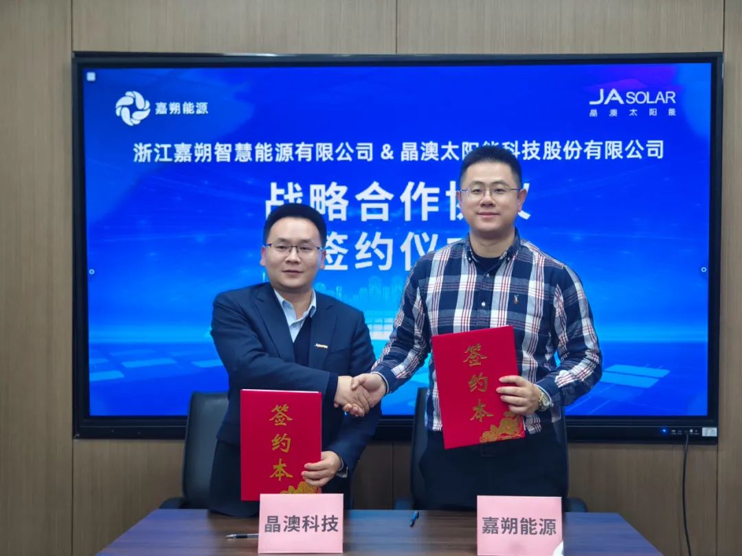 1月25日,晶澳科技与浙江嘉朔智慧能源有限公司(简称“嘉朔能源”)在宁波签署战略合作框架协议。