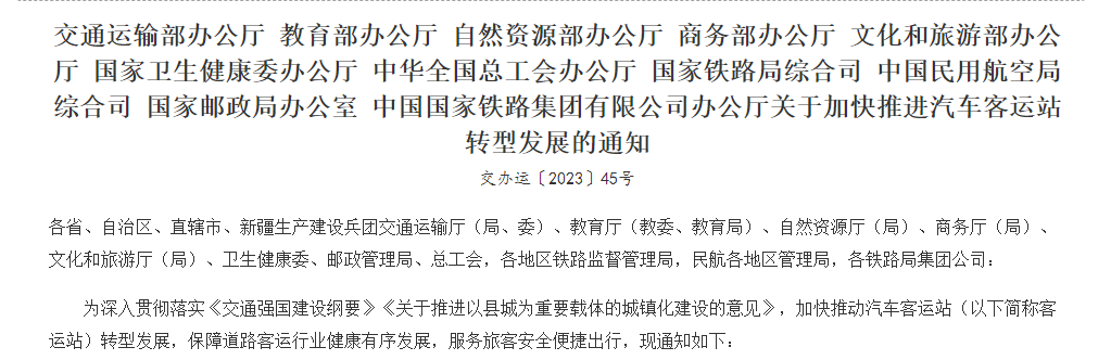为了加快推动汽车客运站转型发展,保障道路客运行业健康有序发展,服务旅客安全便捷出行,交通运输部等11部门联合印发了《通知》,意在将汽车客运站逐步摆脱传统的单一功能,向多元化、综合化、智能化的方向转型,为旅客提供更加便捷、舒适、安全的出行服务。