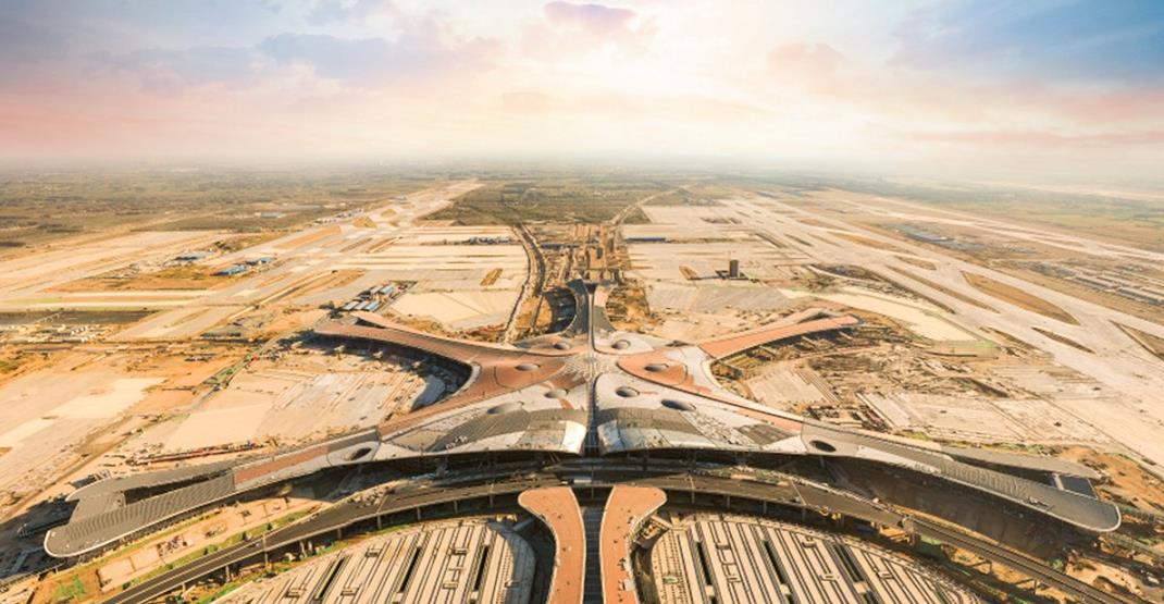 北京大兴国际机场,工程总投资800亿元,总建筑面积达140万平方米,相当于 63 个天安门广场。被英国《卫报》等媒体评为“新世界七大奇迹”榜首。通航后,将赶超迪拜世界中心和土耳其伊斯坦布尔第三国际机场,成为世界上最大的单体航站楼以及世界最大空港。作为全世界屈指可数的超大型航空综合交通枢纽,其可再生能源总量将占机场年综合能源消费总量10%以上,其中跑道周边铺设光伏系统,年均发电量约占机场总能源使用的1%。建成后的北京大兴国际机场将是目前全国运用可再生能源比例最高的机场。