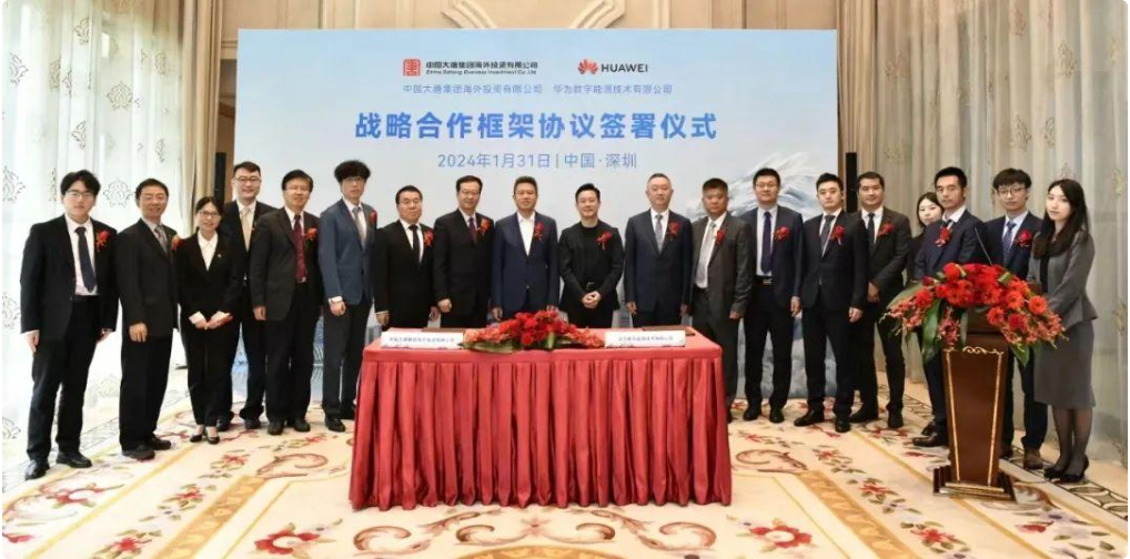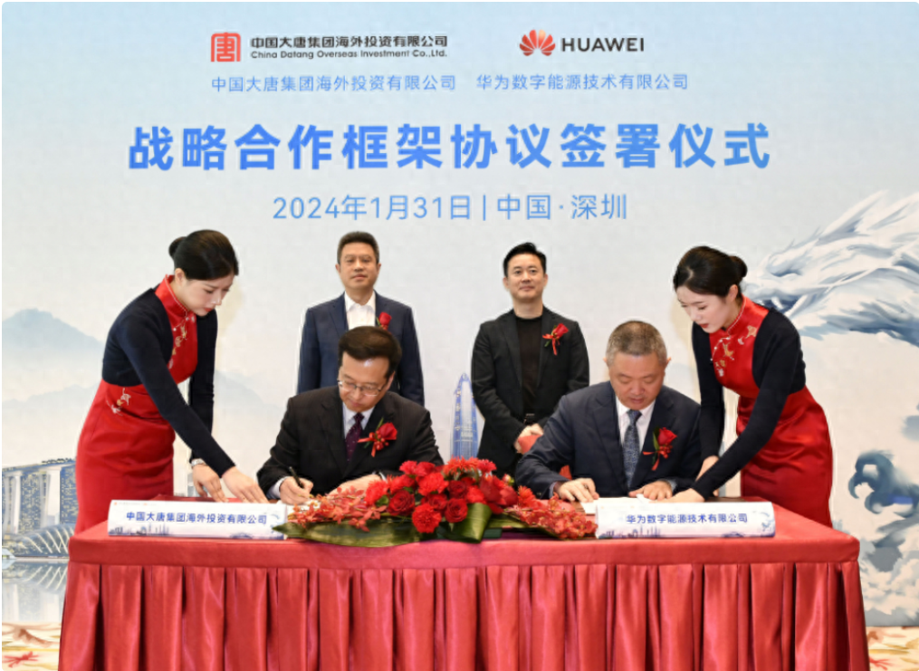 2024年1月31日,中国大唐集团海外投资有限公司与华为数字能源技术有限公司在华为深圳总部签署战略合作框架协议。