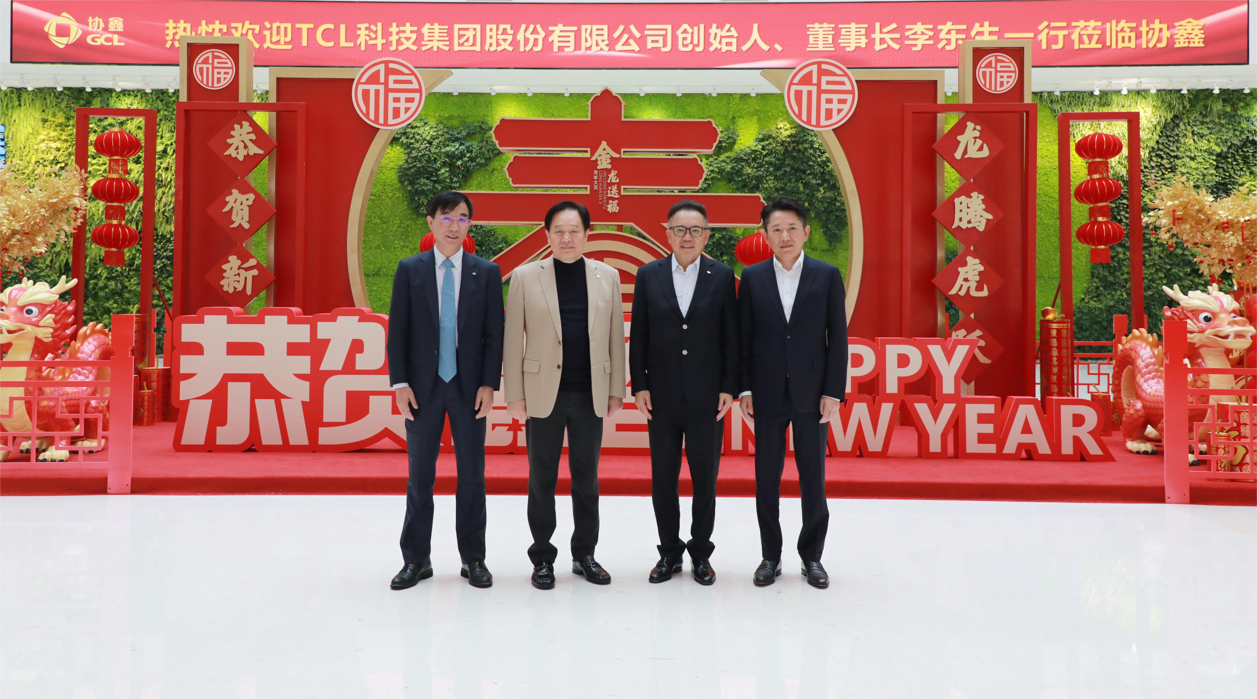 2月19日,开年复工翌日,TCL科技集团股份有限公司创始人、董事长李东生一行专程到访苏州协鑫能源中心,与集团董事长朱共山就进一步深化战略合作、共同应对行业周期以及海外项目布局等话题进行对话交流。TCL科技集团高级副总裁、中环半导体总经理沈浩平,协鑫集团总裁朱钰峰等出席座谈。