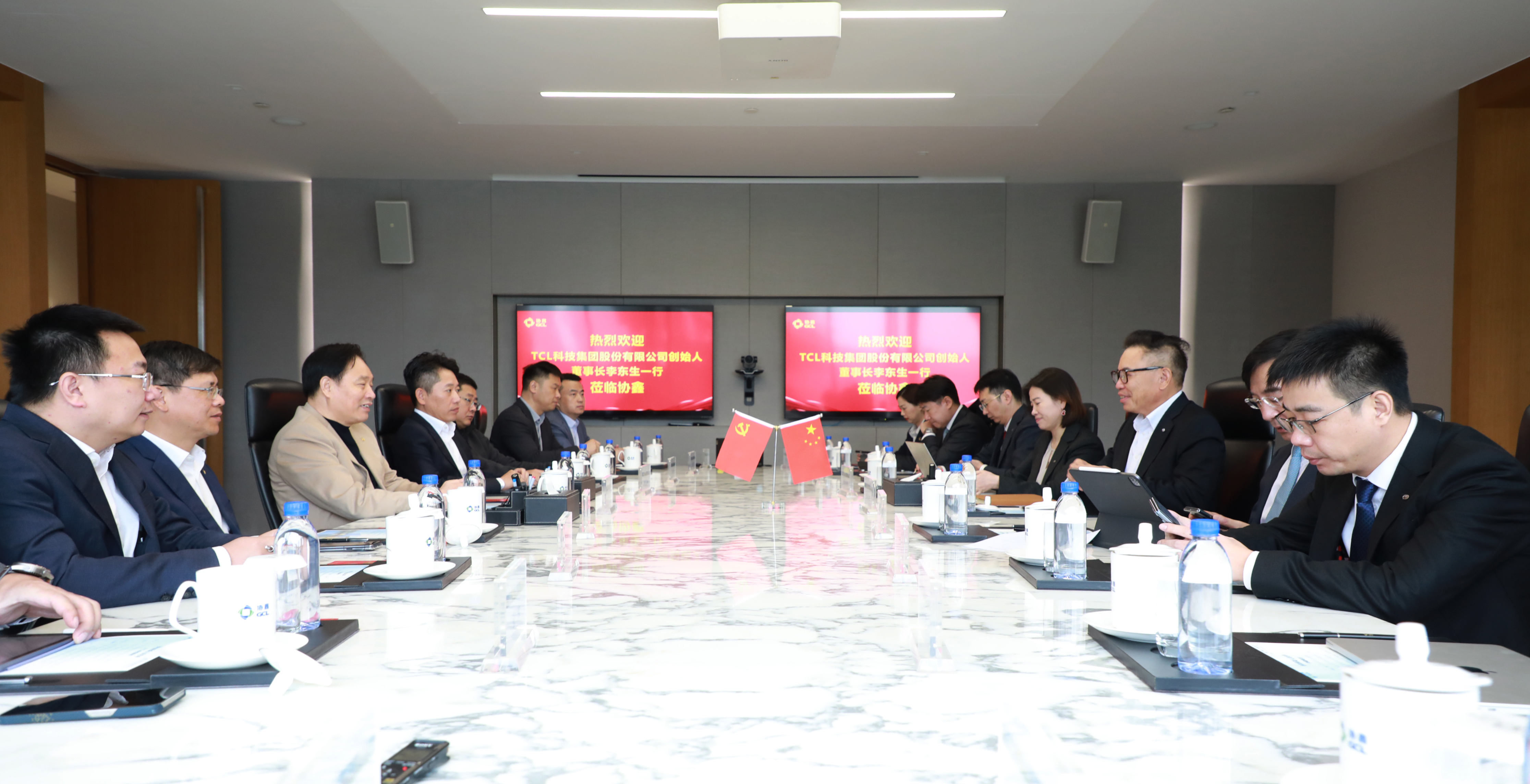 朱共山对李东生一行专程到访协鑫表示欢迎。他表示,协鑫集团一直秉承“把绿色能源带进生活”的理念,致力于推动光伏行业的科技进步和产业升级。他认为,TCL作为科技领域的领军企业,双方既有的战略合作前景广阔、潜力巨大。面对新一轮光伏行业周期,希望双方抱团取暖、链式共赢,巩固深化合作,强化科技赋能,扩大合作领域,在技术研发、海外布局、市场拓展等层面谋求新的更大合作空间。