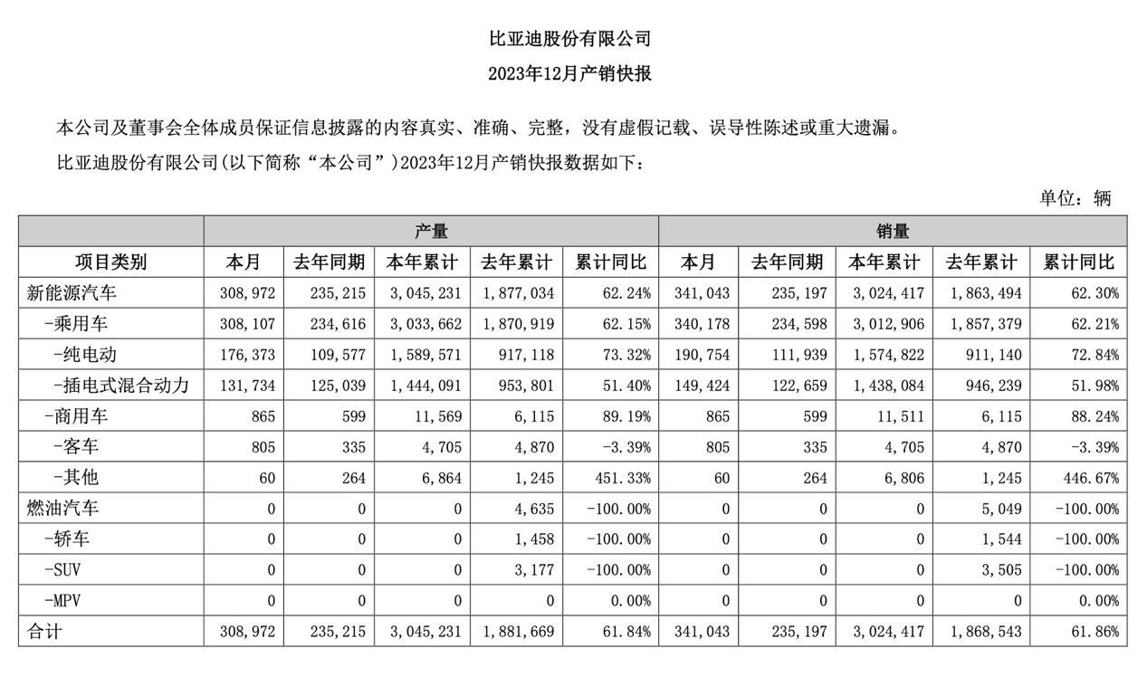 销量突破300万辆!深入解读2023年比亚迪成绩单