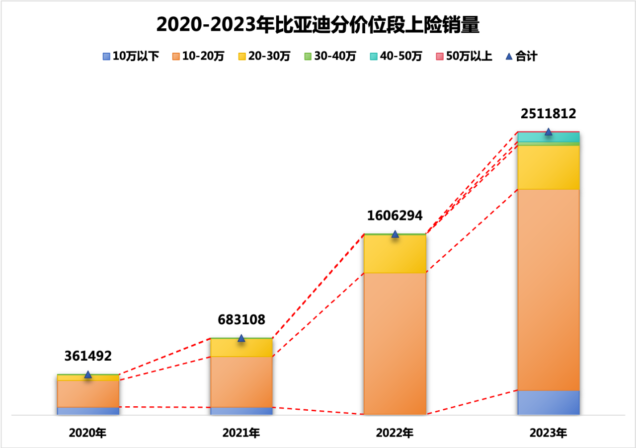 于是乎在2023年,市场上经常会听到“比亚迪在20-30万价位段已经失去竞争力了”,“腾势只是依靠抢占市场空白赢得销量”,“比亚迪的高端化并没有取得成功”之类的声音。