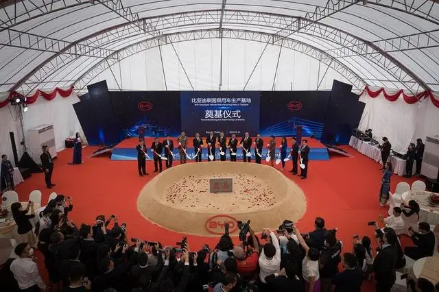 伴随着比亚迪在泰国的热销,以及泰国汽车销售的本地生产要求,2023年3月,比亚迪在泰国罗勇府为其首个海外乘用车生产基地举行奠基仪式。该基地位于罗勇府伟华工业园内,占地面积近600莱(约100万平方米),预计投资178.91亿元泰铢(约33.83亿人民币),首期工厂计划将于2024年上半年正式投产,投产后的年产能约15万辆。