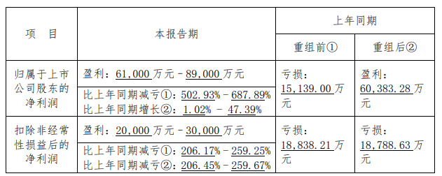 此外,上年同期重组后归属于上市公司股东的净利润为盈利,扣非后的净利润为亏损,主要是因为同一控制下企业合并产生的子公司期初至合并日的当期净损益为非经常性损益所致,非经常性损益影响金额约为7.92亿元。