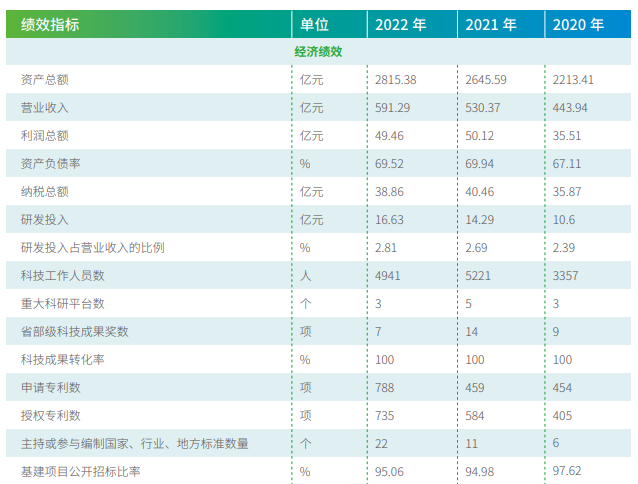 近年来,中国节能各项绩效指标实现稳定增长。自2020年至2022年,集团资产总额由2213.41亿元提升至2815.38亿元;营业收入由443.94亿元提升至591.29亿元;利润总额由35.51亿元提升至49.46亿元。