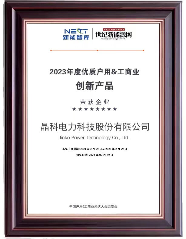 奖项的设立旨在鼓励太阳能光伏企业的技术创新和品牌建设,表彰对产业持续发展作出重要贡献的优秀企业。此次参与评选的企业都是行业内实力雄厚的光伏品牌,经过多轮的初审、复审甄选,晶科晶能宝在众多优秀企业中脱颖而出,荣获“2023年度优质户用&工商业系统品牌奖” 、“2023年度优质户用&工商业创新产品奖”的荣誉,这是对晶科晶能宝在户用光伏领域的技术创新、品牌建设、优质服务以及卓越表现的充分肯定。