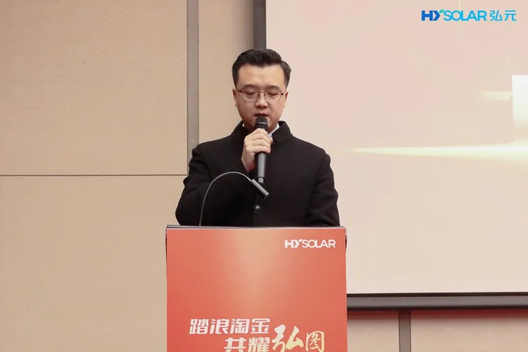 弘元绿能组件营销中心亚太区销售总经理王且勇、材料营销中心总监杜青作2024年业务条线规划部署,充分肯定团队的辛勤付出,鼓励大家在未来的工作中持续稳扎稳打,更好地协同,挖掘更大的市场,推升公司业绩高阶发展。