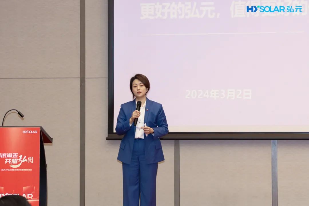 首先,弘元绿能总经理杨昊做开场动员,杨昊表示2024光伏行业依旧面临巨大挑战,但光伏人需要保持乐观与信仰,紧跟行业动向,勇于和强者竞争。营销人需要具备狭路相逢勇者胜的气势,躬身入局持续做开疆拓土的英雄,实现弘图壮志。一番热情发言点燃现场每一位弘元营销人的斗志。