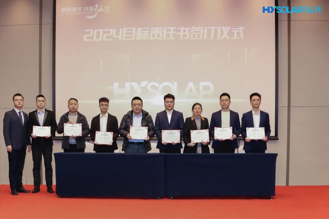 2024年持续做好打硬仗的思想准备,全面攀登更高的山峰。各业务营销团队负责人签署2024目标责任书,共同明晰打法目标、紧密协同,实现弘元营销的量利倍增。