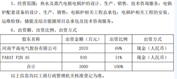 公告显示,合作企业PARAT P2H AS有限公司,经营范围包含电极电锅炉的设计、生产、工程总承包,以及储能、电网调频、综合能源工程总承包及技术咨询服务等。