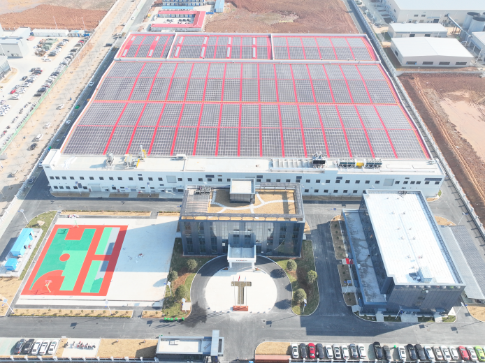 目前,海螺新能源已建成一期年产30万平米光伏幕墙组件生产线,二期50MW平面光伏瓦、30万平米金属屋项产线项目建设将于年内投产。在安徽枞阳,海螺首个BIPV光伏建筑一体化示范性项目已经正式投用,该项目采用BIPV系统解决方案,合理利用枞阳海螺65600平米的原料堆棚光照资源,将光伏发电技术与原有建构物充分融合,每年可提供绿电近400万度。