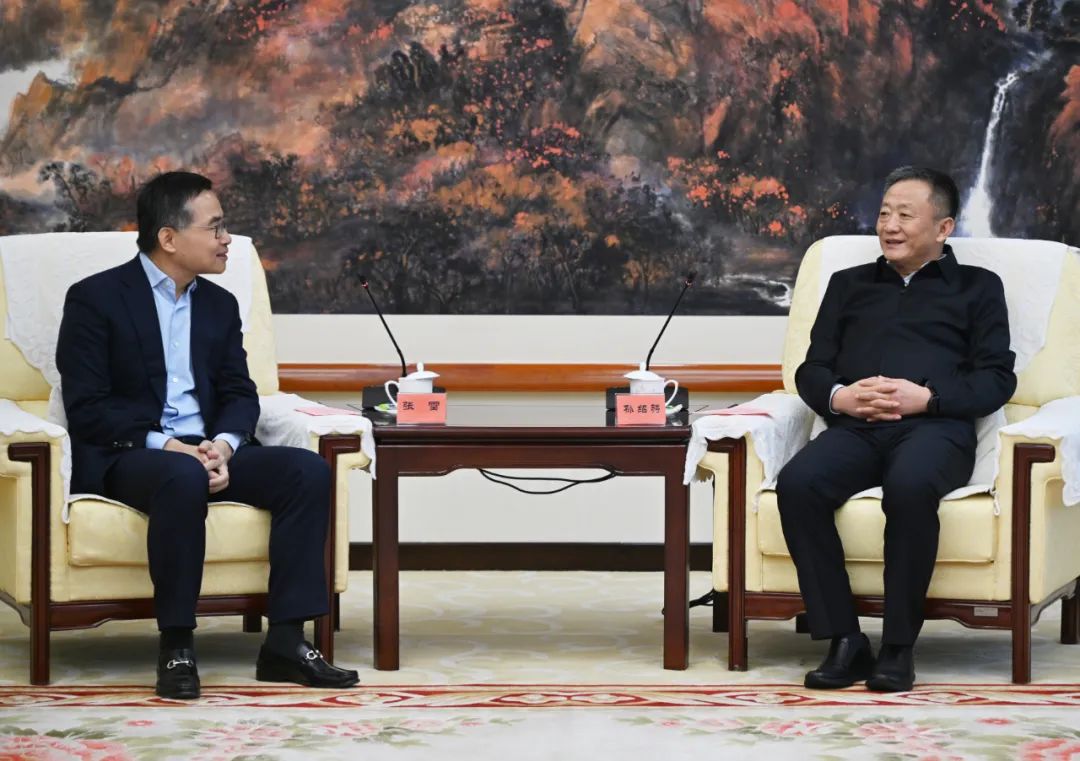 3月12日,内蒙古自治区党委书记孙绍骋,自治区党委副书记、自治区主席王莉霞在呼和浩特会见远景科技集团CEO张雷一行。