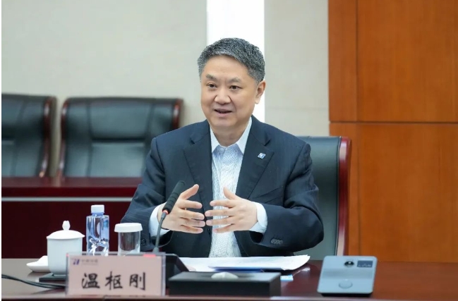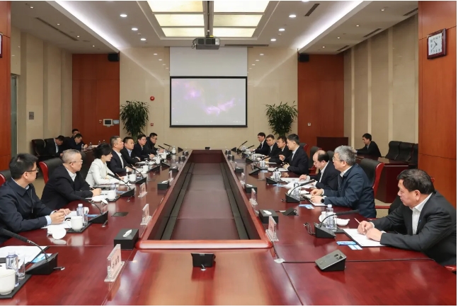 温枢刚对高纪凡一行的来访表示欢迎,对天合光能210高功率组件的推动工作表示认可并介绍了近年来华能在经营发展、产业布局、绿色转型、科技创新等方面的情况。