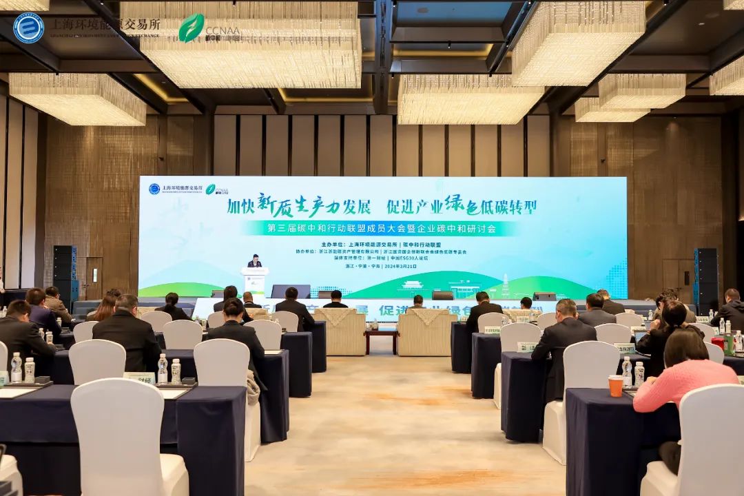 3月21日,由上海环境能源交易所、碳中和行动联盟共同主办的“第三届碳中和行动联盟成员大会暨企业碳中和研讨会”在浙江宁海顺利召开,本次会议邀请了政府机构、行业专家及在“双碳”领域取得一定成就的企业代表等共同参与,会议以“加快新质生产力发展,促进产业绿色低碳转型”为主题,助力企业绿色健康发展。